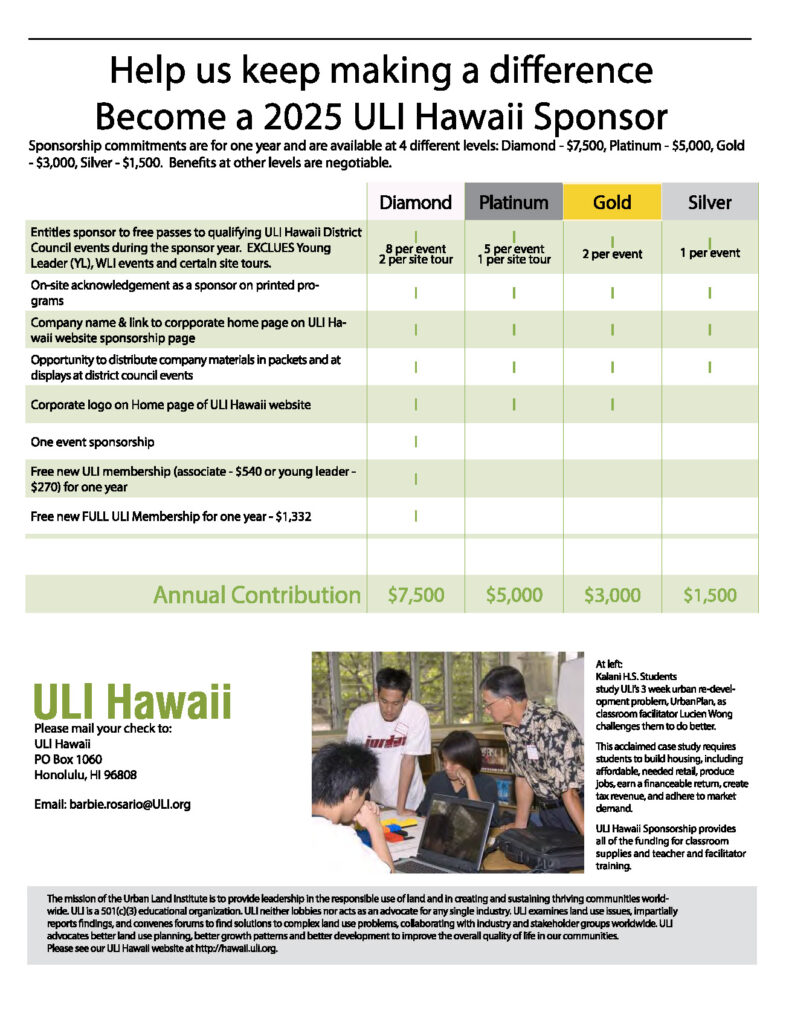 Our sponsors comprise the leading real estate industry companies in the state. Sponsors receive a number of benefits for their contributions, in addition to the satisfaction of knowing 100% of their funds are going to support ULI’s local programs, educational activities, and research.